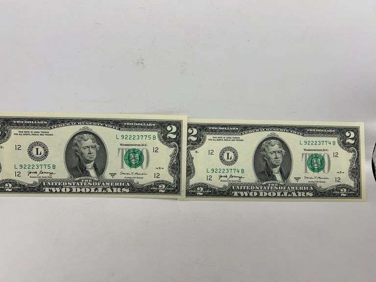 LOT 120 - 2 Sequential Two Dollar Bills UNC